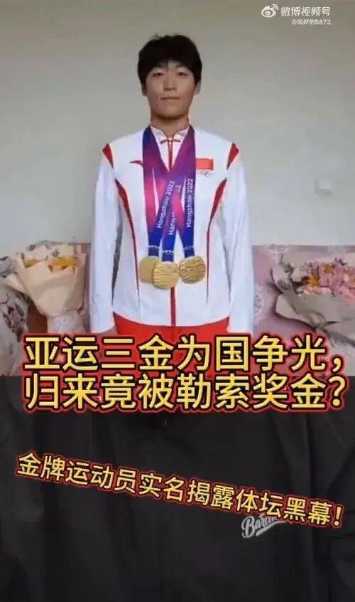 举报视频中,王莉说,自己获得亚运三金,回到云南省松茂体育训练基地后,训练基地负责人范某文向她索要国家发放的15万元比赛奖金。