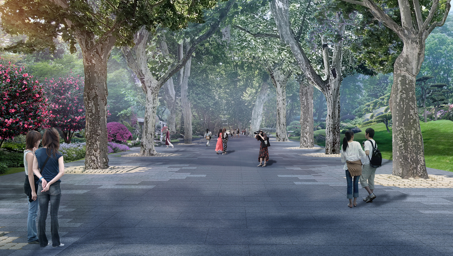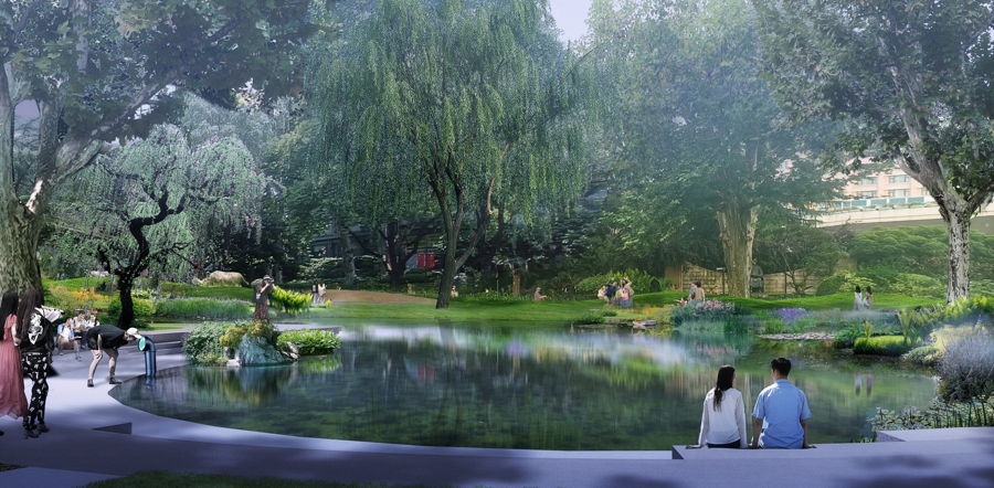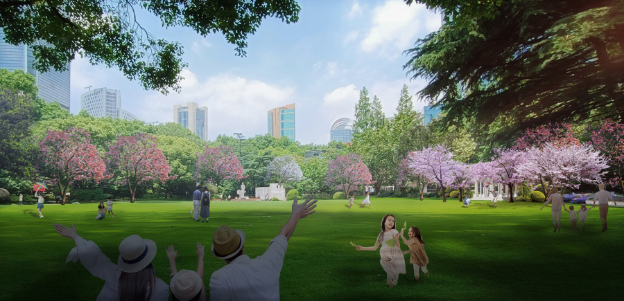 绿化部门透露,在街区融合方面,延安路和华山路上的公园围墙将被拆除,公园与阿波罗大厦的边界将被打通。同时,在现有三个出入口的基础上,华山路上将再增加一个出入口,使公园更好地成为“都市花园”。