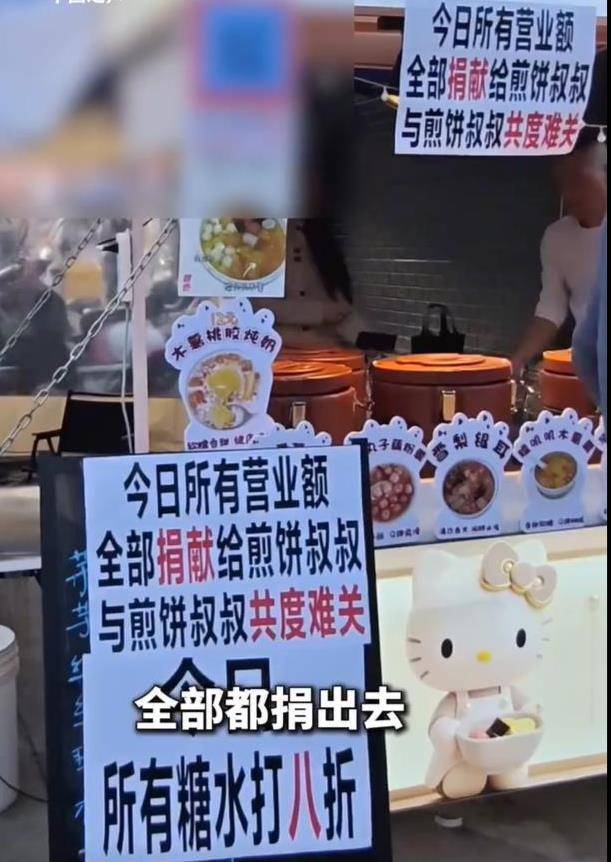 近日,福建师范大学旗山校区旁的小吃街上,许多摊位一夜之间都换上了同一个收款码。摊主们贴出通知:“捐赠今日营业额,与煎饼叔叔共渡难关。”